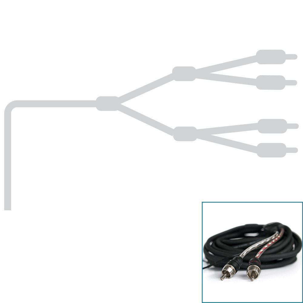 2-4-6 CHANNELS available. SOFT TOUCH™, matt black jacket makes for an extremely flexible cable. POLYAMIDE POLYMER inner jacket protects inner conductors. 110% TWISTED MYLAR AND DOUBLE ALUMINIUM shield rejects RFI and EMI. WTPTM (Winding Twisted Pair) balanced conductors reject low frequency electro-magnetic fields. CDASTM (Cascaded Dual Aluminium Shield) to eliminate radiated interference and ensure “noise-free” signal transfer. OVER 100 dB noise rejection. PLATINUM SATIN ABSTM style machined metal contacts. EXTENDED REMOTE TURN ON WIRE, built-in remote conductor for ease of installation. TUG-PROOF sealed internal connection for maximum reliability. MOLDED Y BLOCK for protection of the conductors in critical split point. “COMPETITION GRADE” performance.