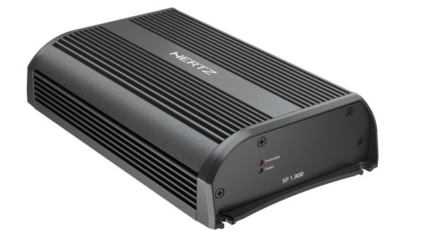 SP 1.900 mono amplifier features Hertz ADC (Advanced D-Class) output stage, reaching up to 87% efficiency. The maximum power of 1000 W RMS is already available at 2Ω and remains stable even at 1Ω. Being ultra-compact with impressive power, SP 1.900 is the ideal choice for Motorcycle applications under-seat in sports cars and behind-seat installations in trucks.